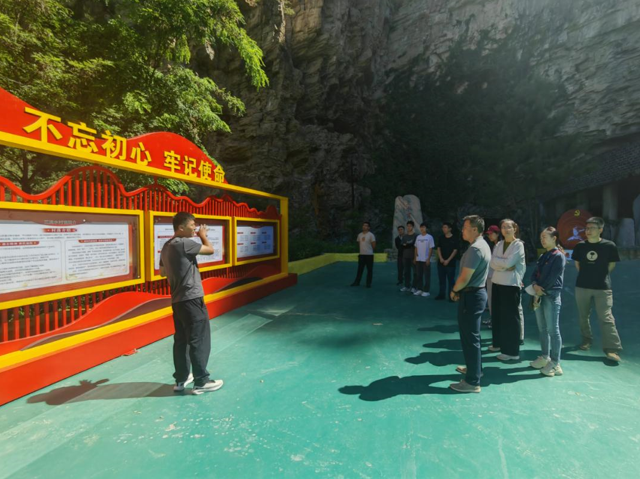 在隧道入口,第一书记刘庚同志讲述1976年以来三流水村党员带头、村民齐上,团结奋斗凿山通路的光荣历史,充分展现三流水村坚韧不屈的愚公精神,参加活动的党员、团员在实地看到隧道之后也不禁感叹打通一座大山背后所蕴含的坚定党性和坚韧意志,纷纷表示要将新时代愚公精神带回必赢3003no1线路检测中心,运用到企业全面深化改革任务攻坚当中,融汇于首都轨道交通事业发展当中。